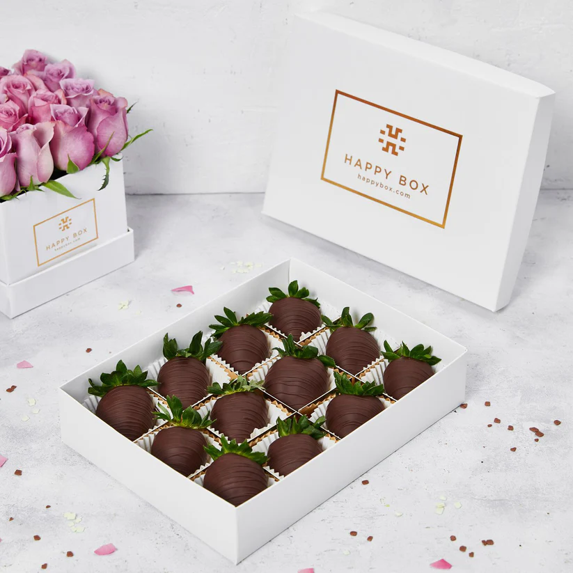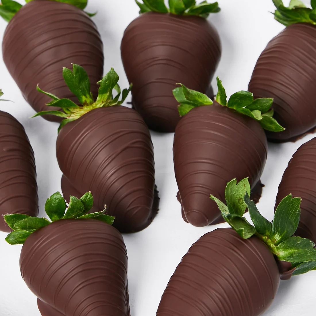 For our dark chocolate lovers. Fresh Strawberries, hand dipped and drizzled with delicious 65% dark swiss chocolate.