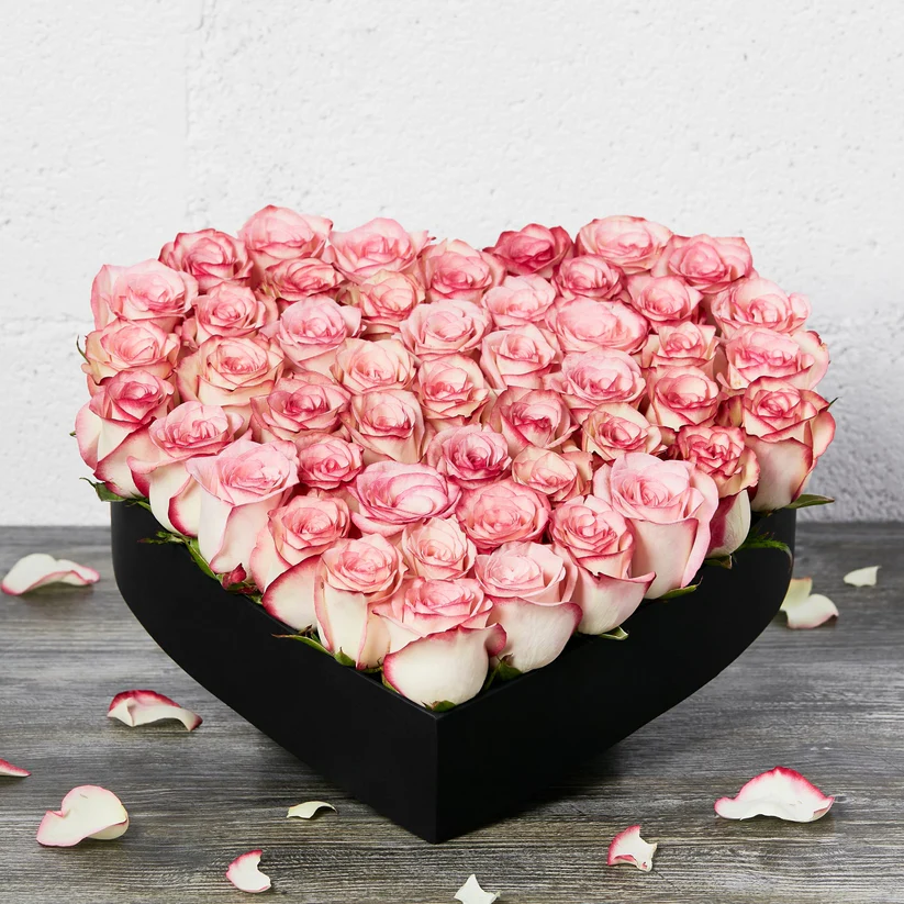 The perfect gift for the Sweet Heart in your life. Uncover a romantic heartshaped gift box with fresh pink- white roses.
