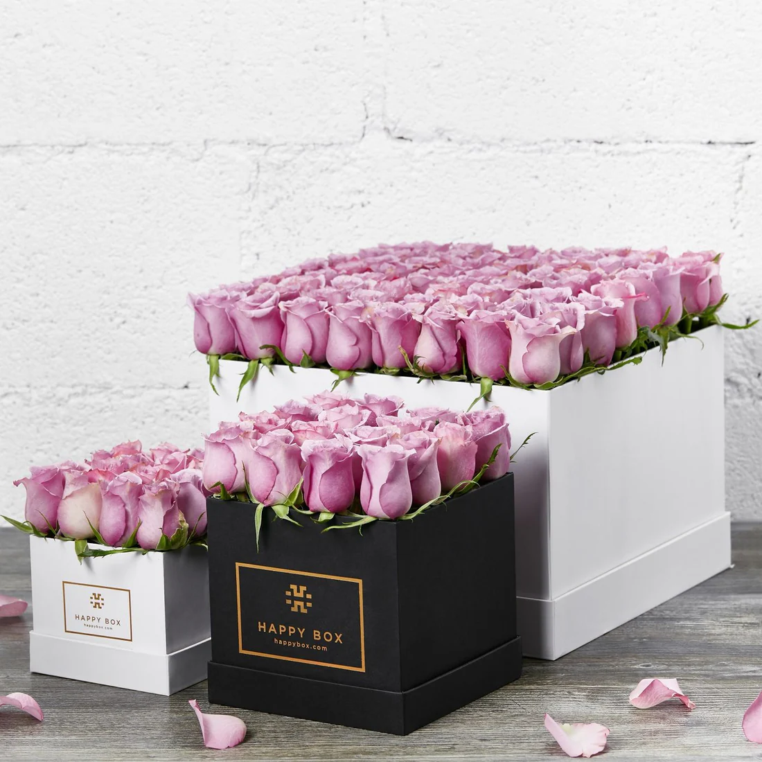 Boxsize 30 cm x 30 cm 49 roses Boxsize 16 cm x 15 cm 16 roses Boxsize 12 cm x 12 cm 9 roses