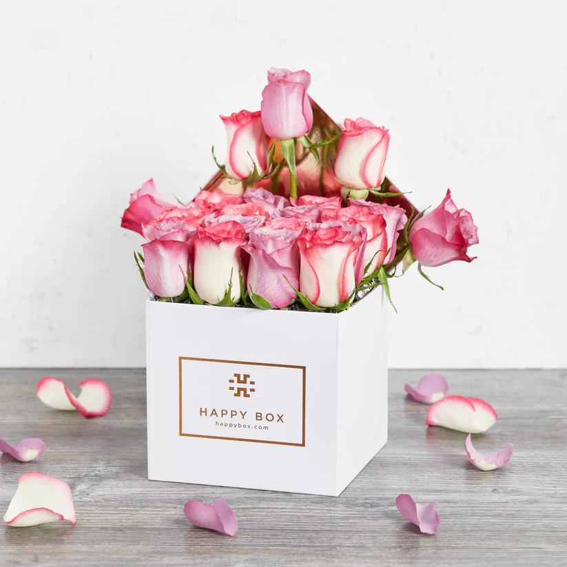 Pink-Purple Roses in square box.