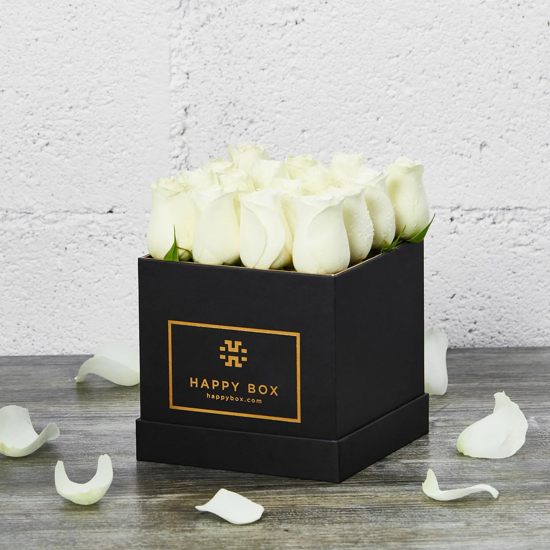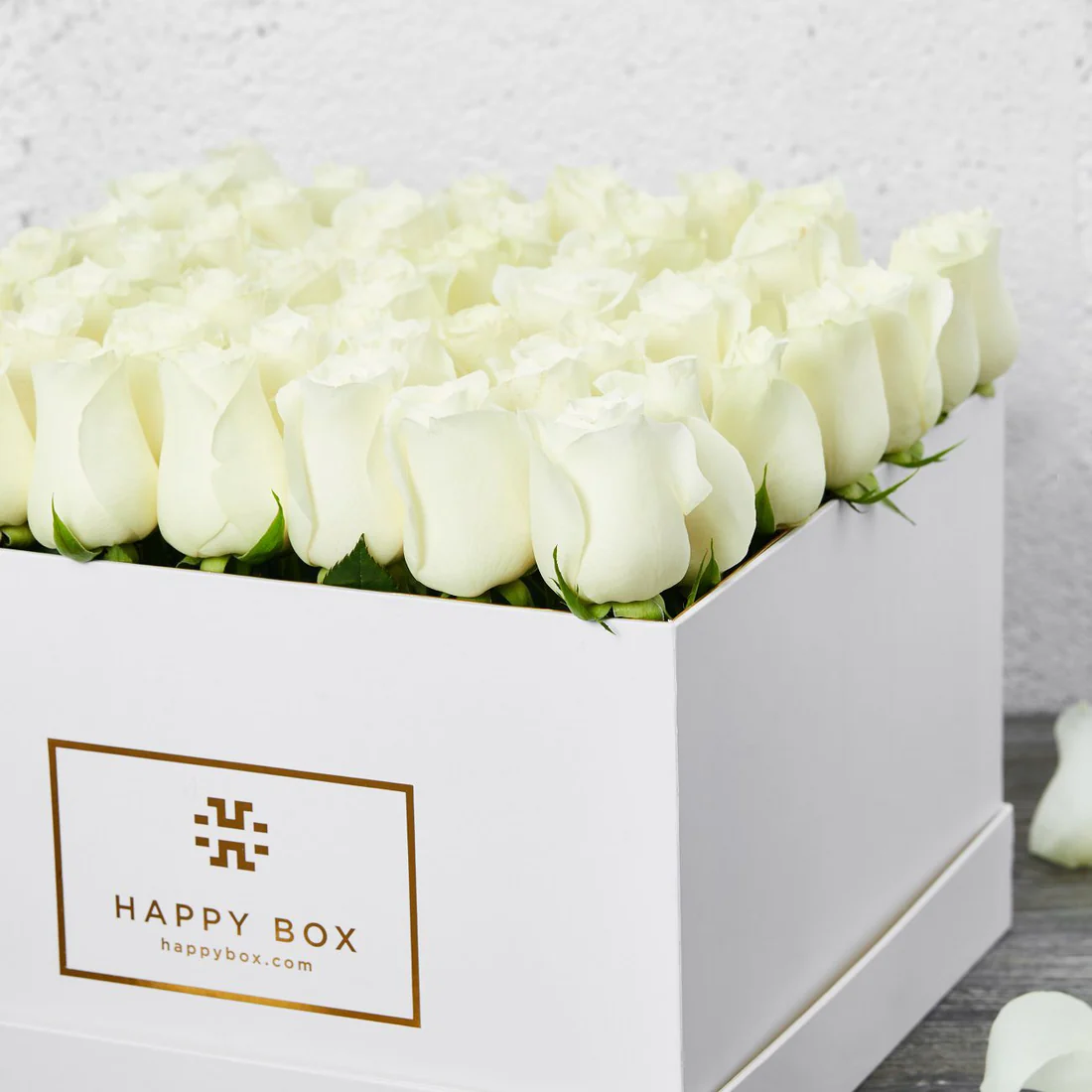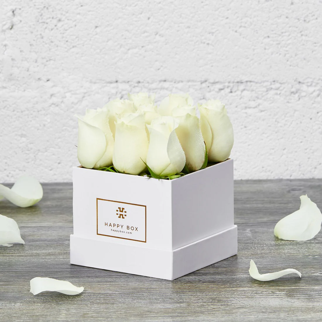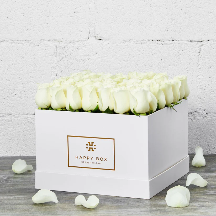 White roses in square box